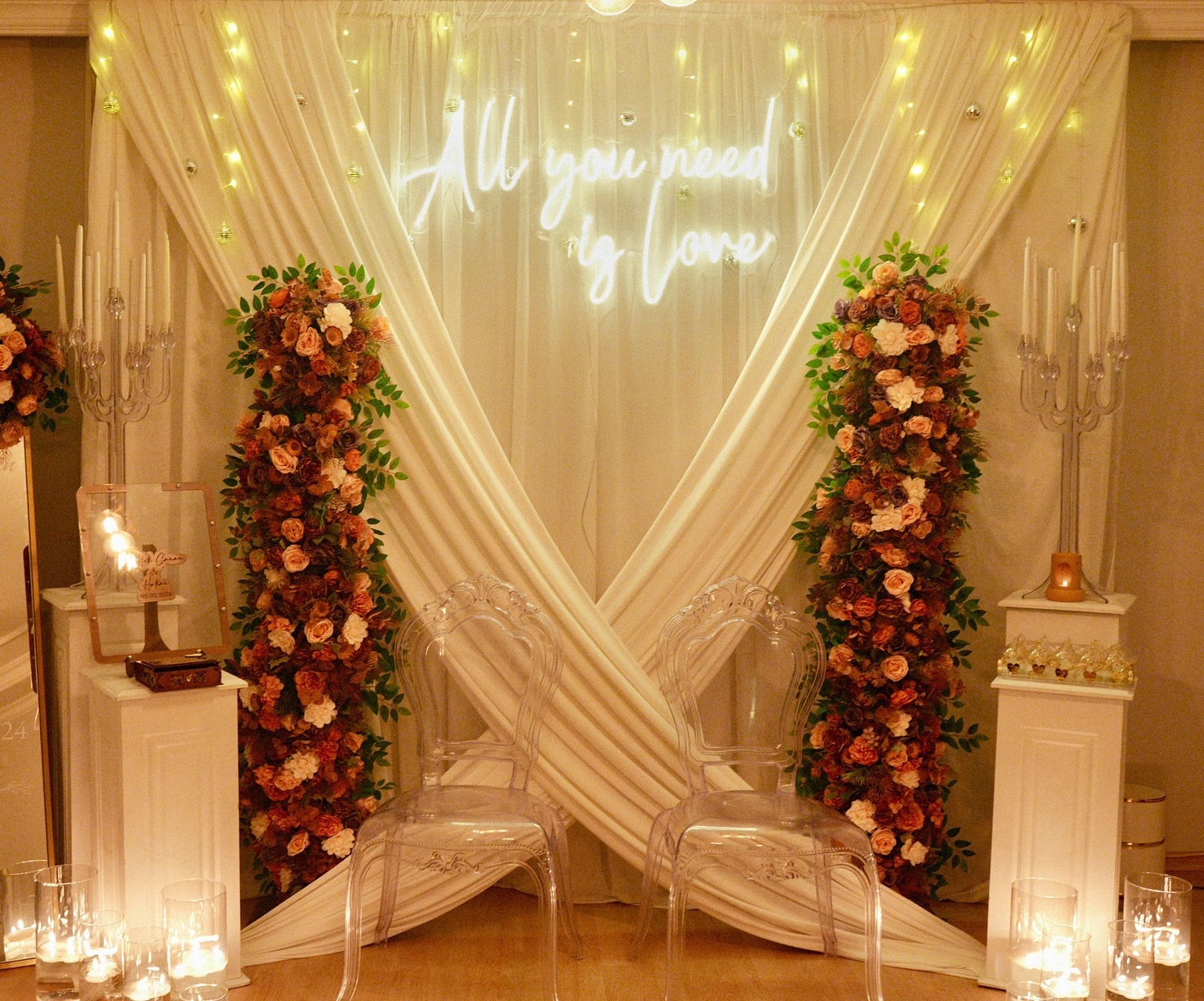 Beyaz Ev Organizasyon, her çifte özel çözümler sunuyor. İsim yazılı panolar, fotoğraf köşeleri ve temaya uygun aksesuarlar ile organizasyonlarınızı kişiselleştiriyor.