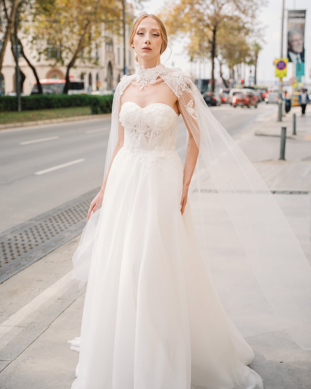 Omuzları hafif geriye alıp cape’in akışını hissettiğin an fotoğrafların resmen bir moda dergisi karesi gibi çıkar. ✨
