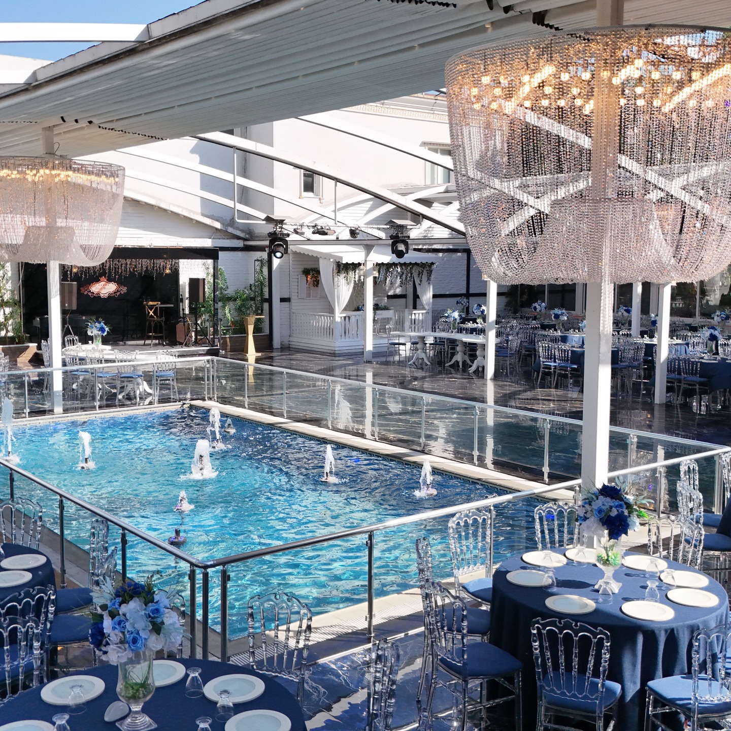 Bu mekânın en büyük avantajı, “plan B” stresini ortadan kaldırması. Açılır kapanır tavan ve kapalı alan alternatifi sayesinde hava durumuna göre son dakika değişiklikleri bile sorunsuz yönetilebilir. Havuz başı alan çok şık olduğu için süsleme konusunda abartıya kaçmadan da etkileyici bir düğün atmosferi yaratılabilir. Gelin-damat masası ve ilk dans alanının havuza göre konumlandırılması, fotoğraflar açısından büyük fark yaratacaktır. ✨