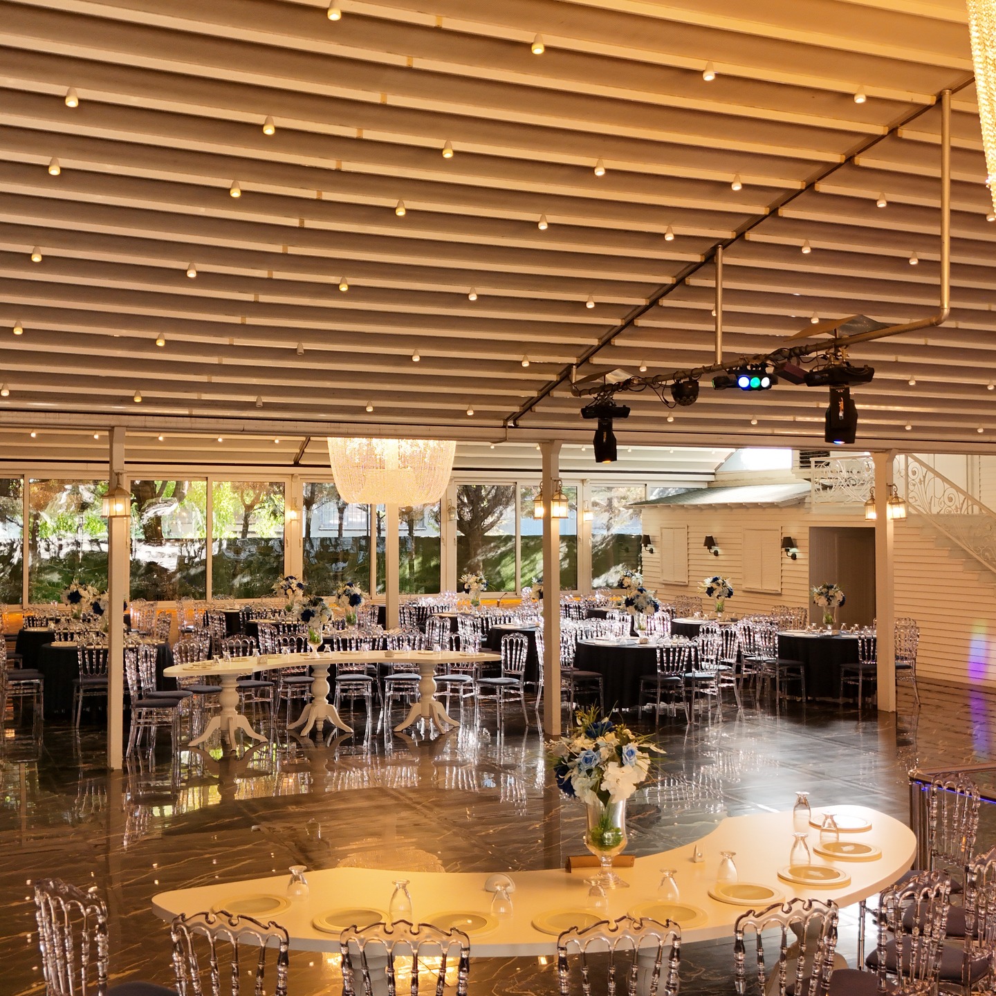 ile hem açık hava ferahlığını hem de salon konforunu bir arada sunan çok yönlü bir düğün mekânı. Modern çizgilerle klasik detayların dengelendiği bir stil dikkat çekiyor.