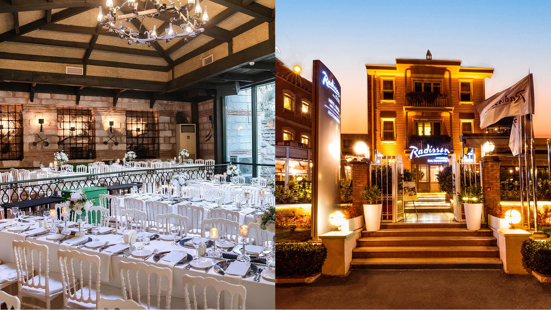 Radisson Istanbul Sultanahmet, butik otel konsepti, deniz kenarı konumu ve yüksek tavanlı, taş dokulu iç salonu ile modern – klasik tüm düğün konseptlerine uyum sağlayabilen şık bir atmosfer sunuyor.