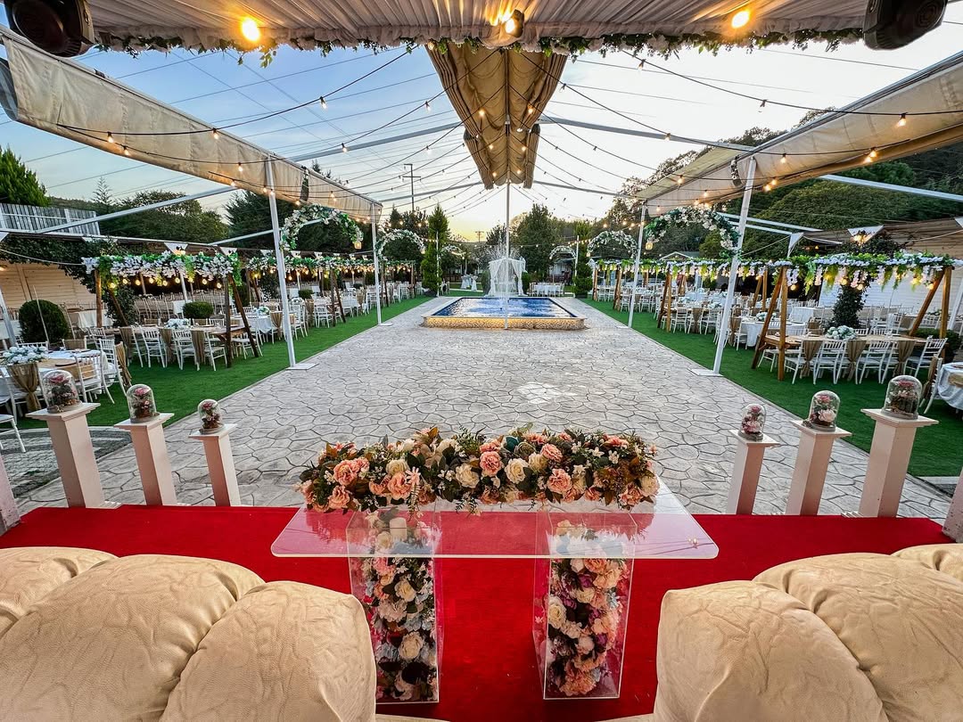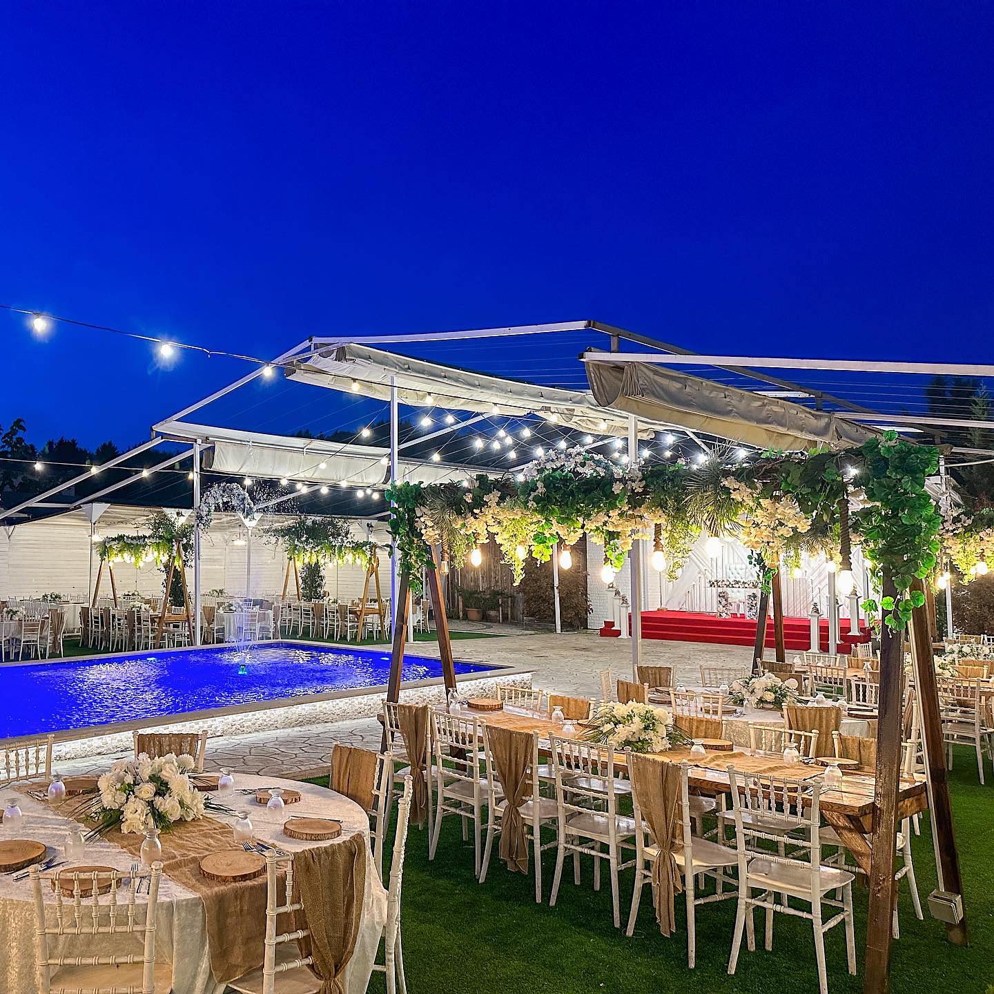Talia Garden, İstanbul / Beykoz’da, orman içinde konumlanan, havuz başı atmosferi ve rustik düğün konsepti ile öne çıkan; doğallığı zarafetle buluşturan bir kır düğünü mekânı olarak dikkat çekiyor. Açılır–kapanır tavan sistemi sayesinde açık hava düğün hayalini, hava koşullarından bağımsız şekilde planlamaya da olanak tanıyor.