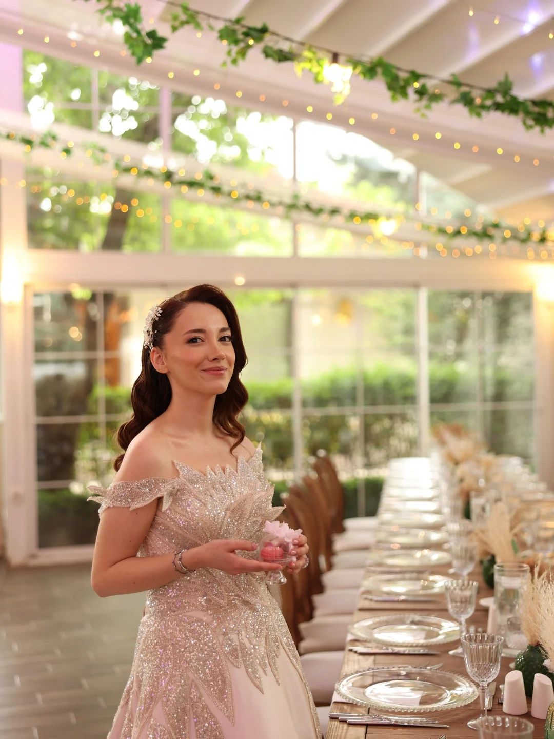 Gündüz doğal ışıkta romantik; gece ışıklandırmalarında ise yıldız gibi parlayacağın bir tasarım. Fotoğraflar tam anlamıyla editorial tadında çıkıyor. 📸✨